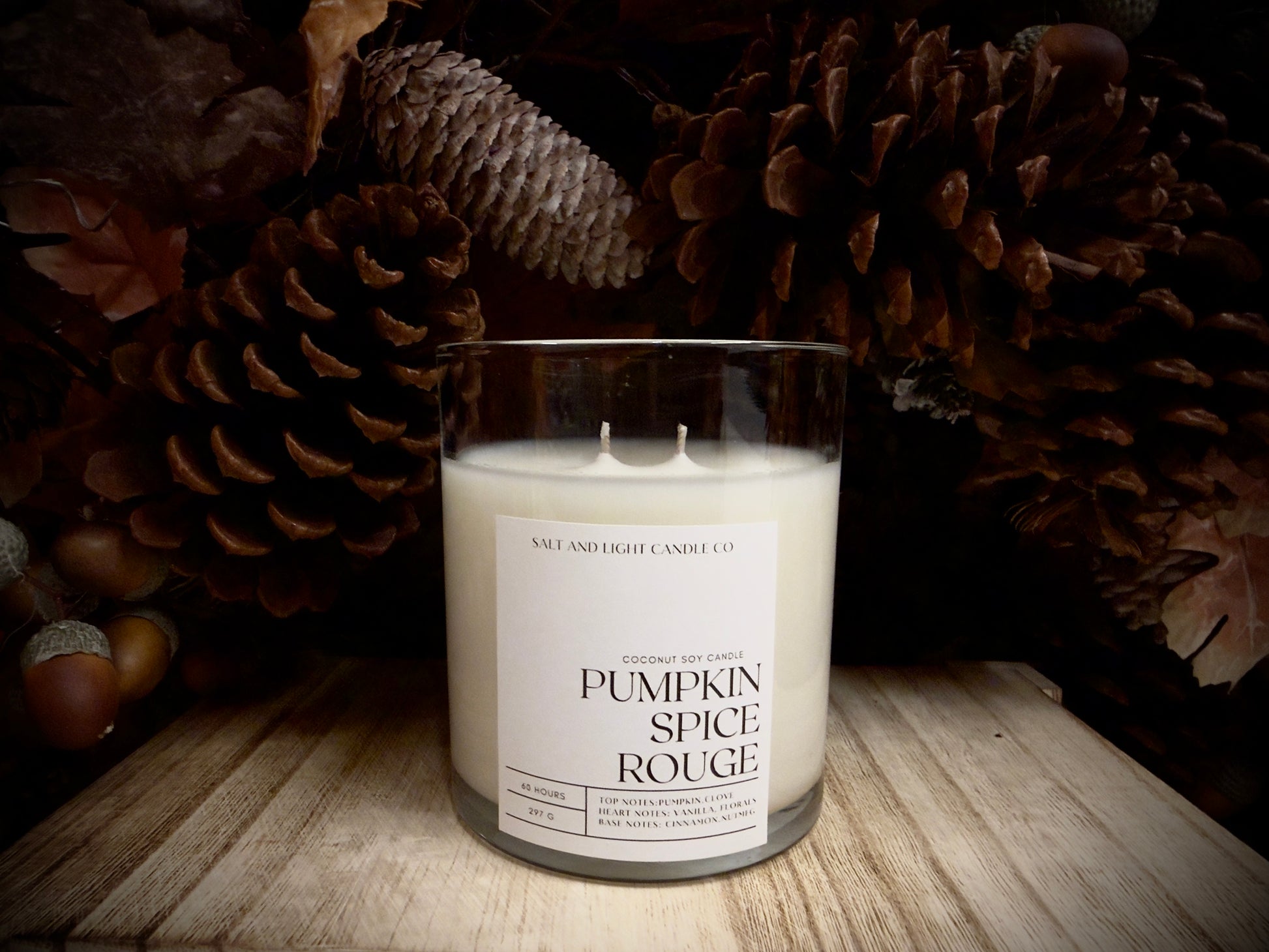 A spicy, sweet, and indulgent blend that captures the essence of cozy autumn sophistication with a playful, modern twist and a hint of sweet vanilla. This hand-poured 14oz coconut soy wax candle featured Notes: